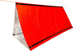 Lo suficientemente grande como para que quepan 2 personas y equipo, la carpa de emergencia SOL es resistente a la intemperie, liviana y reflectante del calor. Incluye un saco de material con cordón para yesca y un silbato de supervivencia.