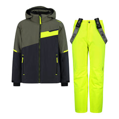 Conjunto de esquí compuesto por chaqueta con capucha desmontable y pantalón con tirantes. El acolchado Feel Warm Flat proporciona calidez incluso en condiciones de frío y humedad, mientras que la membrana Clima Protect, el tratamiento exterior repelente al agua y las costuras parcialmente selladas ofrecen protección contra las inclemencias del tiempo, manteniendo una excelente transpirabilidad. Una combinación de tecnologías diseñada para mantener a los pequeños esquiadores secos y abrigados durante sus días en la nieve. Chaqueta con puños ajustables con velcro y puños interiores de licra con abertura para el pulgar, cremallera frontal con solapa cortavientos y antirozaduras, bajo ajustable con cordón, dos bolsillos laterales con cremallera y un bolsillo para forfait en la manga. Pantalón con tirantes ajustables, polaina para nieve en el bajo y dos bolsillos con cremallera.