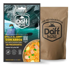 Pollo al Curry con Arroz en formatos pouch de 260 grs. Alimento práctico para transportar en tu mochila o equipaje, y fácil de manipular al momento de consumir el contenido, gracias a su envase doypack que puedes apoyar de forma vertical sobre cualquier superficie. No requiere refrigeración, es de larga duración y muy fácil de calentar.