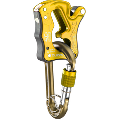 CLICK UP viene equipado y tiene que ser usado con el especial mosquetón CONCEPT SGL HC, con anodizado anti-desgaste y sistema ACL que evita la posibilidad de carga en el eje menor.