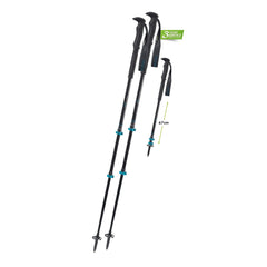 Bastón de carbono de longitud ajustable con zona de agarre ampliada, perfecto para terrenos escarpados. Un bastón para todo el año con su parte inferior hecha de titanal robusto y canastas cambiables.