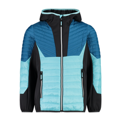 Chaqueta híbrida que combina acolchados Feel Warm Flat en la parte delantera, trasera y antebrazo con tejido ripstop en la zona de la cadera y los brazos. El ajuste ergonómico y cómodo está optimizado por puños, capucha y dobladillo elásticos. Un modelo ideal como capa exterior o capa intermedia en condiciones climáticas especialmente adversas, gracias también a las propiedades repelentes al agua del tejido (libre de PFC).