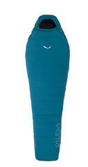 Con la nueva línea de sacos de dormir Diadem, Salewa da una nueva vida a un producto de alta calidad que en el pasado estaba muy bien considerado por los montañeros. Para garantizar que los pies no se queden fríos, la base ergonómica cuenta con un sistema especial de deflectores que potencia la eficiencia en entornos fríos y exigentes. Cuenta con una cremallera completa YKK de doble sentido y antienganches, un tubo aislante grande y el cuello térmico preformado para que no se escape el aire caliente con el movimiento durante la noche. Se puede acoplar a otro con las mismas características de enganche para formar un saco doble. Los cómodos cordones facilitan el ajuste en condiciones extremas. También incluye un bolsillo oculto en el interior para guardar objetos de valor. Diseñado para ofrecer un ajuste y un rendimiento óptimos para usuarios de hasta 185 cm. Incluye una bolsa en seco impermeable y una bolsa de almacenamiento para guardarlo sin comprimir y conservar su estructura.