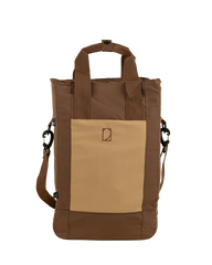 Matera de ripstop repelente al agua color marrón y beige. Bolsillo principal con cierre y elásticos internos para sujetar termo y mate. Dos tiras cortas y una tira larga regulable.